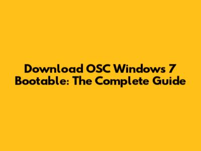 Download OSC Windows 7 Bootable: The Complete Guide